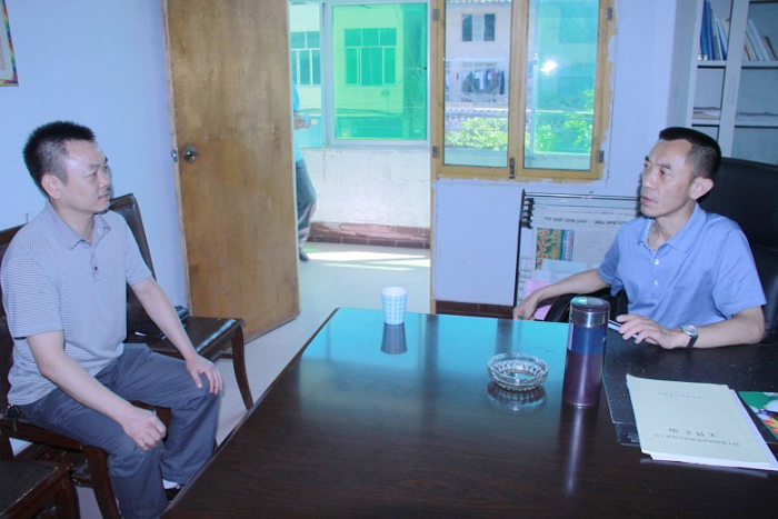 渠县国土资源局党委书记、局长张思伟(右)在宝城调研