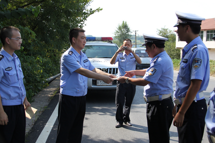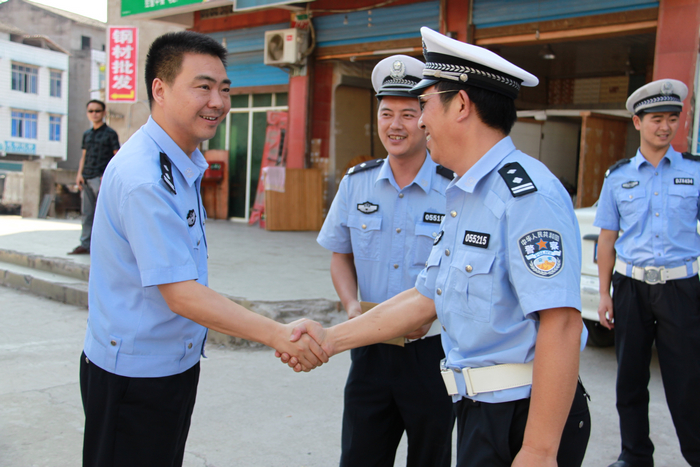 王东一行先后来到特勤中队办公室、渠江大桥红绿灯岗亭、G318线三级执勤点、S204线渠西三叉路口执勤点,对战斗在一线的同志进行慰问。冒着酷暑高温,王东首先看望在城区指挥交通的民警,他深情地说:“同志们,你们在高温,烈日下坚守岗位,为确保我县道路交通安全、有序、畅通,作出了积极贡献,我代表大队向你们表示亲切的慰问!”