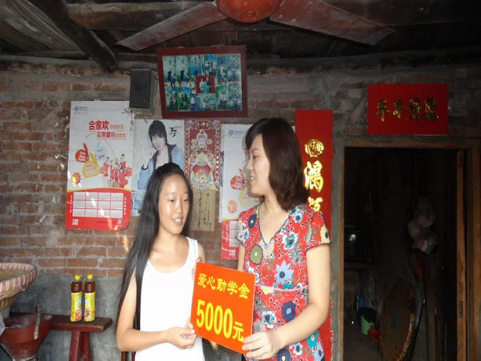 家住锡溪乡中道村5组的代莉,因母亲内风湿严重,长年手脚麻木,丧失劳动能力,父亲为照顾母亲无法外出务工,靠务农维护代莉上学和给她母亲治病,十分贫困。尽管家中房屋濒临倒塌,也无钱翻修,代莉靠助学金艰难地完成了高中学业。正当领到内江师范大学录取通知书的代莉一筹莫展时,团县委了解情况后,及时发动社会爱心人士为其捐款5000元,并在开学前送到了代莉家中。