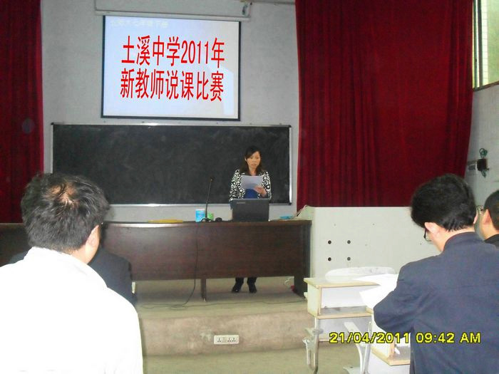 4月21日上午,土溪中学举行“新人杯”说课赛课活动。参加这次说课赛课活动的十几位老师全是一年前分配、调动到该校的老师。此次说课赛课旨在检验新教师在土溪中学一年来的上课水平,展示新教师的教育教学风采。
