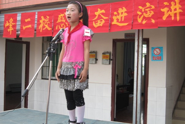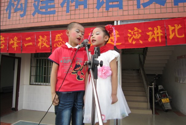 为喜迎建党九十周年、庆祝六一,5月31日上午,岩峰二校举行感恩奋进、红心向党中小学生演讲比赛。
