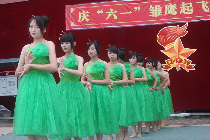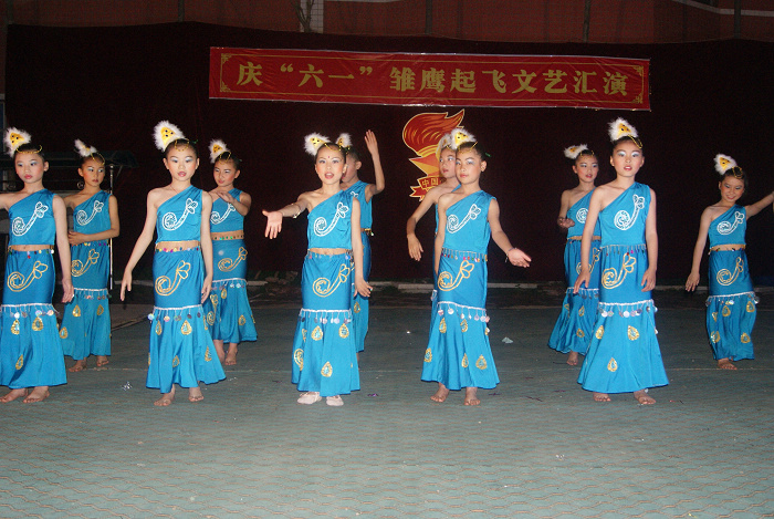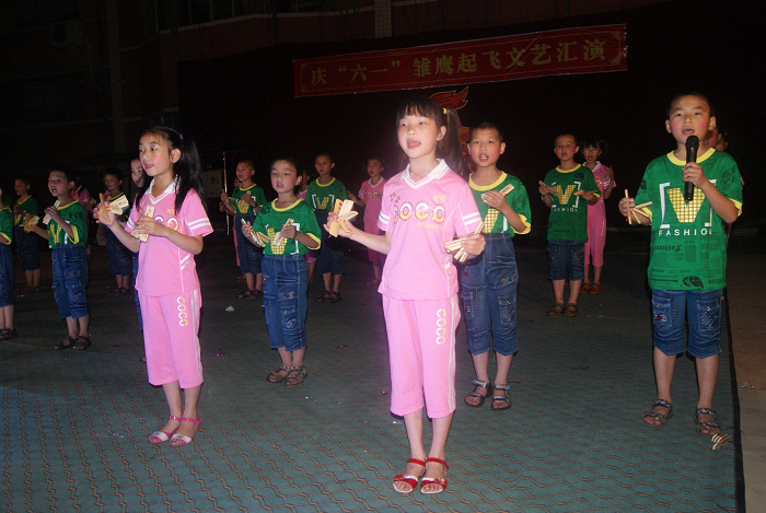 晚上6时整,全校师生在校园操场欢聚一堂,小演员们身着节日的盛装,歌唱着欢快的旋律;演出前首先为新队员举行了隆重的入队宣誓仪式,并表彰了一批优秀的少先队员和文明标兵;学前班的小朋友表演的舞蹈《爱我你就抱抱我》,舞姿丰富多彩,动作轻快活泼;二年级三班朗诵的《感恩的心》寓意深远;四年级二班表演的快板《小学生讲礼貌》富有教育意义,五年级学生表演的舞蹈《快乐的我们》和《孔雀飞来》等好戏连台,精彩纷呈。小观众们个个兴高采烈,笑声、歌声、掌声不断。整个校园洋溢着庆祝“六一”儿童节的欢快气氛,展现了艺烽小朋友们蓬勃向上的精神风貌,展示了学校素质教育的丰硕成果,赢得了在场所有观众的热烈掌声。(李平善)