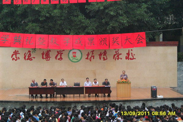 9月13日上午,渠县土溪中学在学校操场举行了2011年秋季新学期开学典礼暨教学成果颁奖大会。