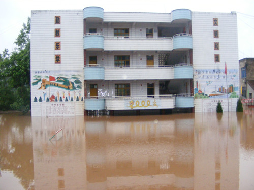9月19日下午5:30,校园进水3.2米,9月20日凌晨3:30洪水慢慢退去。趁着水位不断下降,学校组织所有人员,对教室、办公室、会议室、幼儿园、操场等场所进行淤泥清理、冲洗,桌凳、门窗清洗,做到了水退人进,人到淤除,并对整个校园进行了全面消毒。校园又恢复了往日的风采。