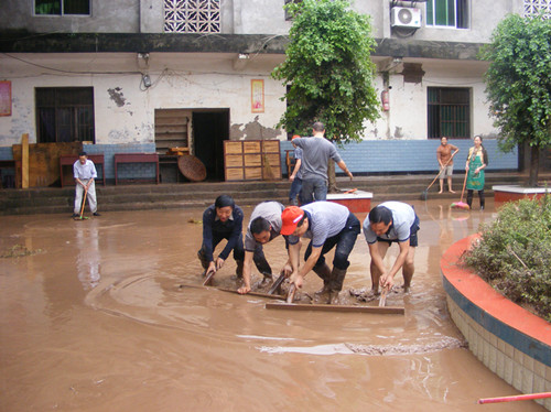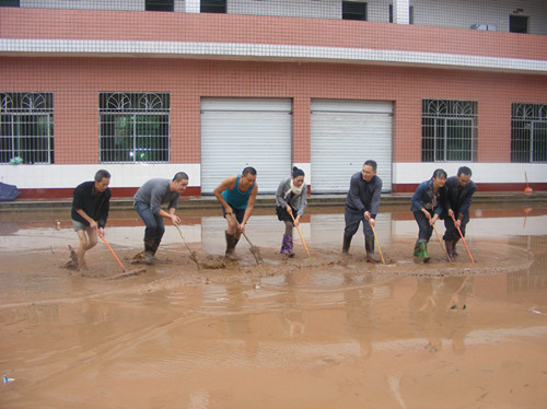 和乐学校干部职工四天三夜冒雨搬运财产、退水清淤,超强度超负荷的体力劳动,吃饭无固定时间,以方便面充饥,以矿泉水解渴,这一切造成许多教师体力严重透支,有的严重感冒,有的手被划破,有的脚起泡,有的跌倒摔伤,有的衣服湿透……但无一人叫苦喊累,退缩逃避,所表现出来的是:校长一马当先,身先士卒;学校领导班子临危不惧、精心组织、科学应对;老教师老当益壮,青年教师冲锋在前,女教师不让须眉;党员干部就是一面旗帜,率先垂范,义无反顾,连续作战,始终战斗在急难险重的第一线,充分发挥了“主心骨”和“火车头”的作用。这一幕幕精彩画面,彰显了共产党员的先进本色和人民教师的光辉形象,用实际行动书写了抗击洪灾最为动人的篇章。
