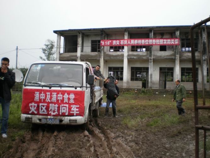 渠县涌兴中学支援洪水重灾区文崇镇石湾村