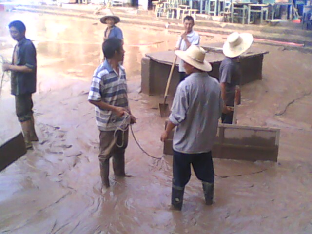 渠县汇南乡中心学校:洪水退去 清淤消毒忙 字体:大 小 打印 关闭本页 作者: 来源:本站原创 发布时间:2011-09-23 14:10:54 点击数: 扫一扫下载渠县网APP 分享 分享到: 正准备冲洗的游乐场 随着洪水的渐渐消去,留下的大量垃圾和淤泥也急待清理。汇南乡中心学校全体教职员工精诚团结克服困难,用挑水来冲洗教室和操场,用铁铲清除垃圾和淤泥。为了防止传染性疾病的发生,消毒也是工作中的一个重中之重。 清淤忙碌的场景