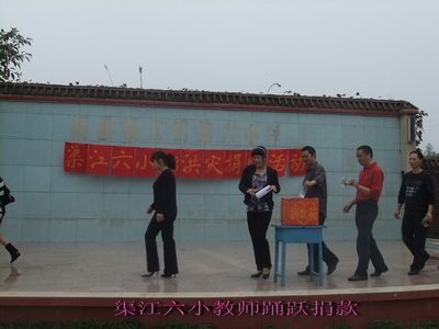 9月27日下午,渠江六小全体教职工在学校操场上举行了“9.18”洪灾献爱心捐款活动。在这次特大洪灾中渠江六小深受其害,损失严重,是少数的几个重灾学校之一。但渠江六小教职工发扬“无灾帮小灾、小灾帮大灾”、“一方有难、八方支援”的互帮互助精神,在学校校长熊福文倡议下教师们纷纷把200元、100元、50元的爱心款投入了捐款箱。本次活动共收到捐款5404元,并及时转交到上级党委政府。活动结束后,学校支部、行政、工会也对该校在这次洪灾中受损严重的个别教职工和留守孩子的家庭予以了慰问,并送去了大米和清油等慰问品。(代 建)