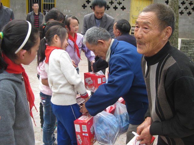 少先队员们首先代表学校全体师生为老人们献上了精心准备的礼物,并拉着他们嘘寒问暖。然后又帮助老人们打扫卫生,叠洗衣物。阳光下,望着少先队员们一张张通红的脸,看着他们额头上的一滴滴汗水,老人们幸福的笑了。接着,孩子们还为爷爷奶奶们表演了精彩的文艺节目,一时间在这个原本寂静的小院里, 歌声、掌声、笑声夹杂在一起,飘出了院子,萦绕在山谷。