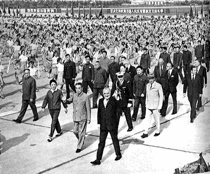 1973年9月1日法国总统蓬皮杜访问我国(前排左一为父亲)
