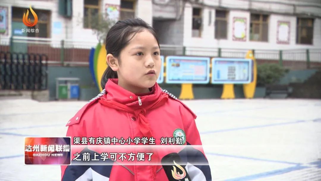 渠县有庆镇中心小学学生 刘利勤:之前上学可不方便了,走路要走1个多小时,现在非常的方便,有车坐,每周我们都会回去。