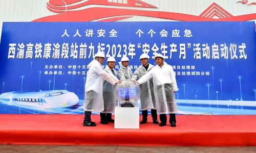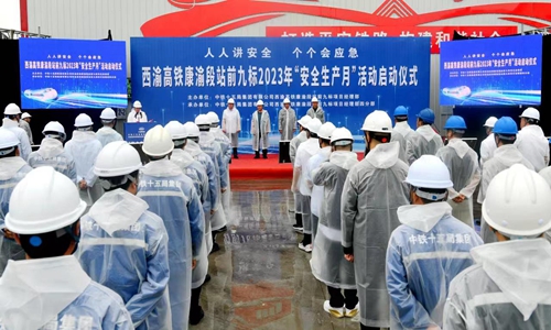 6月4日,在望溪镇境内的西渝高铁康渝段站前九标,渠县会同铁路建设施工单位,举行“安全生产月”活动启动仪式。渠县铁建办、渠县应急局、中铁十五局等单位领导参加。