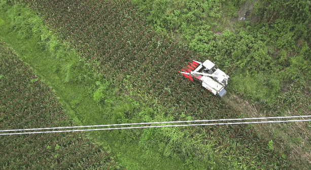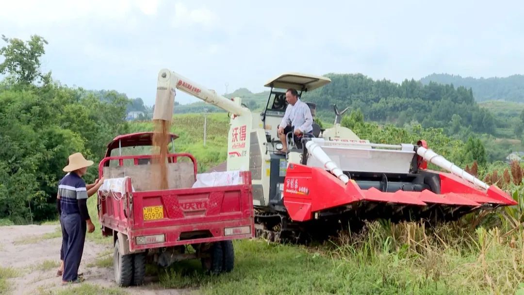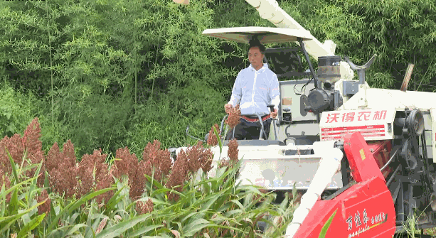 这些天,在渠县李馥镇高硐村的350多亩糯高粱基地里,成片的糯高粱在烈日的催促下逐渐成熟,映红了火红的夏日,农机手正忙着收割高粱。