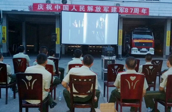 在中国人民解放军建军87周年来临之际,7月30日,渠县电影发行放映公司组织放映队来到渠县消防大队开展电影进军营放映活动。