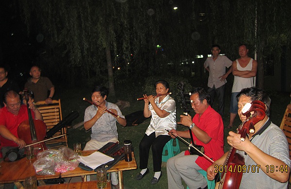 为总结乐队成立一年多来的活动情况,乐队在中秋节前举行了这次小型音乐会和茶话会。图是音乐会演奏的情景。(徐春来)