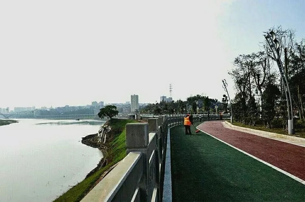 为了达到与流江河南岸、北岸及渠江东岸生态滨江走廊交相辉映的效果,形成城市交通网络环线和健康绿道环线,采取了一段一种风格,充分体现了生态型、亲水型公园美景,提升了渠城城市品位。