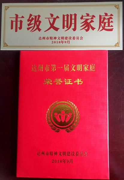 渠县5个家庭被表扬为第一届达州市文明家庭