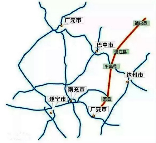 镇巴(川陕界)至广安高速公路通江至广安段位于巴中市通江县、平昌县,达州市达川区、渠县,广安市广安区、前锋区境内,本项目是《四川省高速公路网规划(2014—2030))》省级高速公路8条纵线之一。