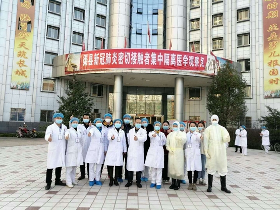 蒋开春(二排左二)与渠县(东城)新冠肺炎密切接触者集中隔离医学观察点的医护工作者们合影
