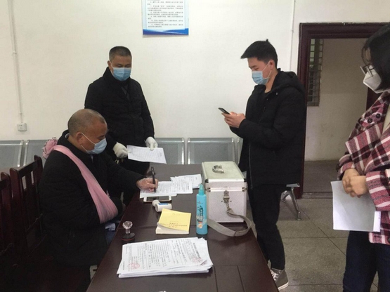 2月26日早晨,余明海接到渠县中学田老师病危的电话,立即出诊,因连续一个月的高强度超负荷的抗疫工作,突然晕厥,从自己骑行的摩托车上跌倒,导致右侧肱骨大结节撕脱性骨折。即使在这样受伤严重的情况下,他也没喊一声痛,说一声苦,更别说请假休息。北门卫生服务中心刘主任说,派人来增援两路社区卫生室的防控工作,余明海却说:“大家都忙,我能坚持就坚持。”在两路社区楼栋间、院落里,总能看到余明海忙碌的身影,右手吊着绷带,用左手在健康证明书上签字,仍然坚持在抗疫一线为外出农民工办理健康证明。