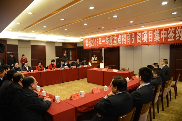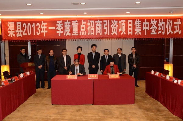 3月1日下午,渠县2013年一季度重点招商引资项目集中签约仪式在达州举行,本次签约的7个重点项目涵盖基础设施、工业电子、农产品加工等领域,总投资17.29亿元。这些项目的成功签约,对于提升渠县防洪救灾能力、改善长远发展条件,推进渠县新型工业化进程、增强产业支撑能力具有重要意义。