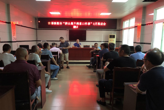 为常态推进整治“群众最不满意10件事”工作,了解各村社区具体工作开展情况,掌握群众诉求整治完成进度,贵福镇于2021年8月11日召开整治“群众最不满意10件事”8月推进会。