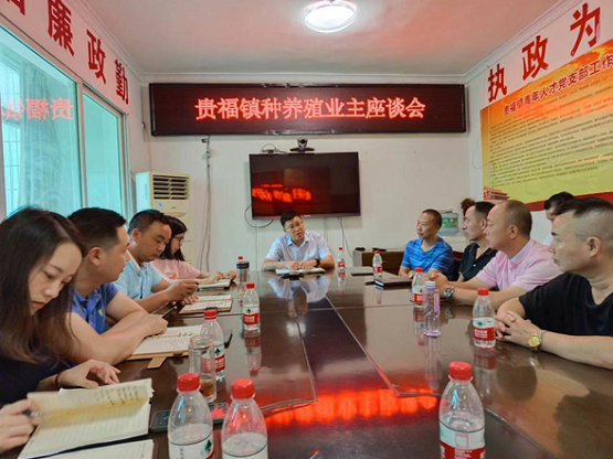 近日,为落实县委县政府指示精神,推动贵福镇地方经济快速发展,贵福镇积极召开种养殖业主座谈会。贵福镇党委书记苟佳与各业主代表进行了亲切的交流和慰问,全面分析了贵福镇种养殖业发展现状和存在问题,研讨了贵福镇种养殖业发展工作思路和问题解决措施,得到了与会业主的热烈支持。