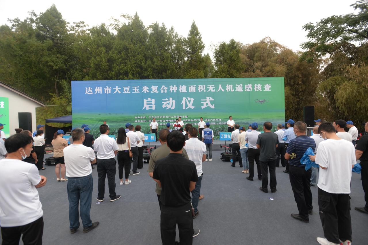 8月29日上午,达州市大豆玉米复合种植面积无人机遥感核查启动仪式在我镇黄泥社区举行。达州市人民政府副秘书长王鸿钊、国家统计局达州调查队队长黄长彬、达州市农业农村局副局长侯重成、达州市统计局局长石卫东、中共渠县县委副书记王剑出席启动仪式并致辞。7个县(市区)分管农业的领导,县(市区)农业农村局、统计局、调查队的主要领导、无人机驾驶员、贵福镇人民政府领导和干部群众代表近200人参加启动仪式。