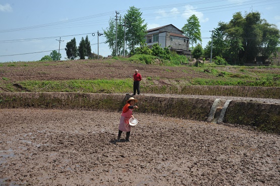 4月21日,记者来到渠县合力镇高拱村四组一块油菜地旁大沙田(地名)与正在打理旱育秧的邓礼富交谈。
