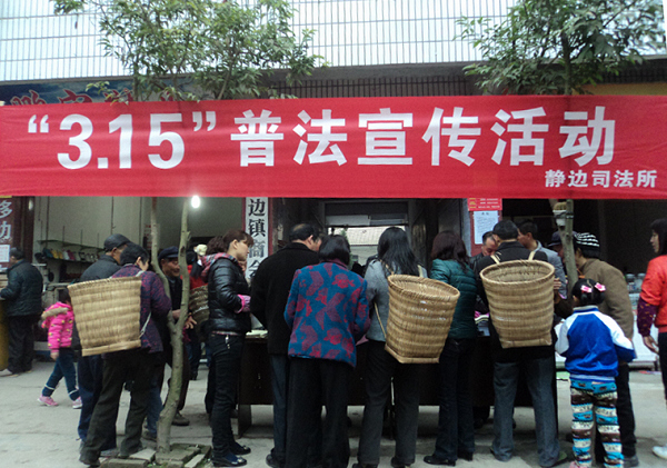 为推进党的群众路线教育实践活动,深入开展渠县司法行政系统“双四百”专项活动,在“3.15”消费者权益日来临之际,3月12日,静边司法所积极开展“3.15”送法进社区活动,受到群众好评。