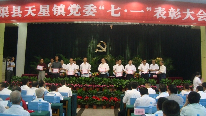 为了纪念光荣的中国共产党建党91周年,七一前夕,天星镇党委在渠县党校会议室召开先进党组织及党员表彰大会。