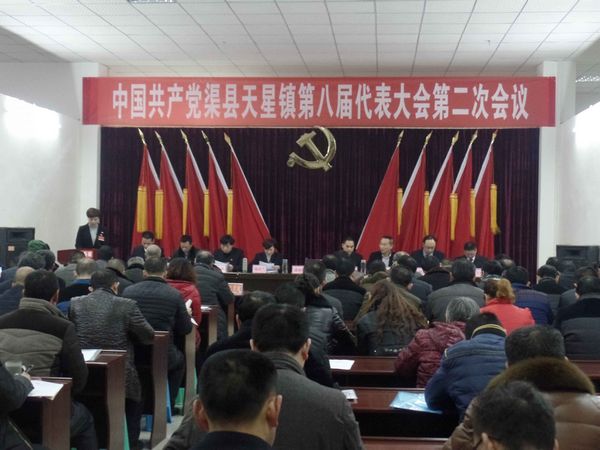 2月2日,中国共产党天星镇委员会召开第八届二次党代会。大会听取和审议了蒲雨阳同志代表中共渠县天星镇第八届委员会所作的工作报告,听取和审议了何泓志同志所作的纪委工作报告,听取了蒲雨阳同志的2014年党建工作述职报告,并对镇党委一年来的工作进行了民主评议。镇第八届党代表76人,列席人员30人参加会议。
