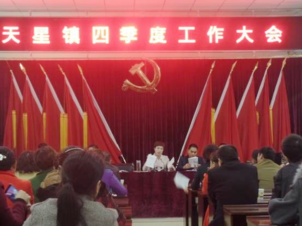 2015年11月26日,天星镇召开第四季度安全生产工作例会,镇党政领导、镇属各部门负责人、村(社区)两委、单位、部门、劝导员、网格员和机关全体干部参加会议.