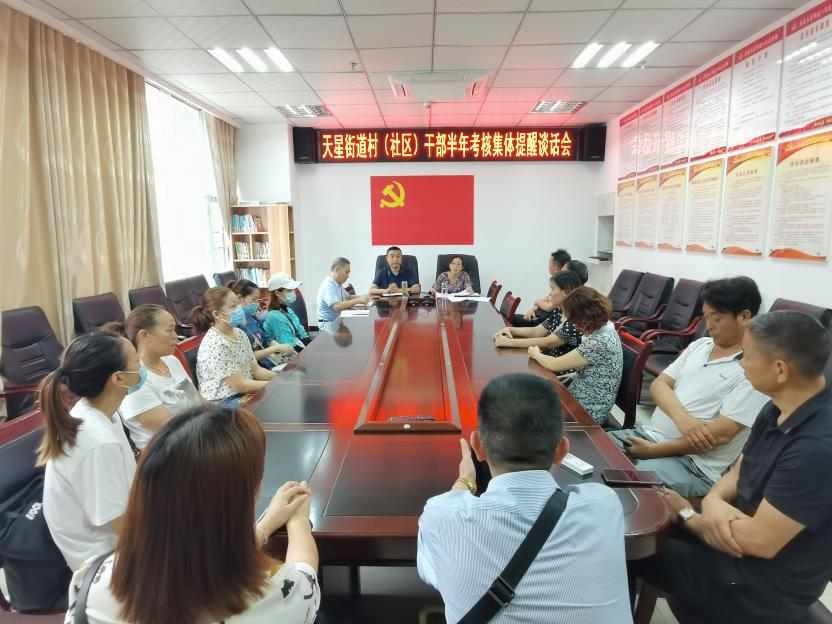 2021年9月26日,天星街道召开村(社区)干部半年考核集体提醒谈话会,对半年考核排名靠后10位的村(社区)干部进行提醒谈话。会议由街道党工委委员、组织委员张密主持,纪工委书记邓仕林、党建办主任黄兴文等参加。