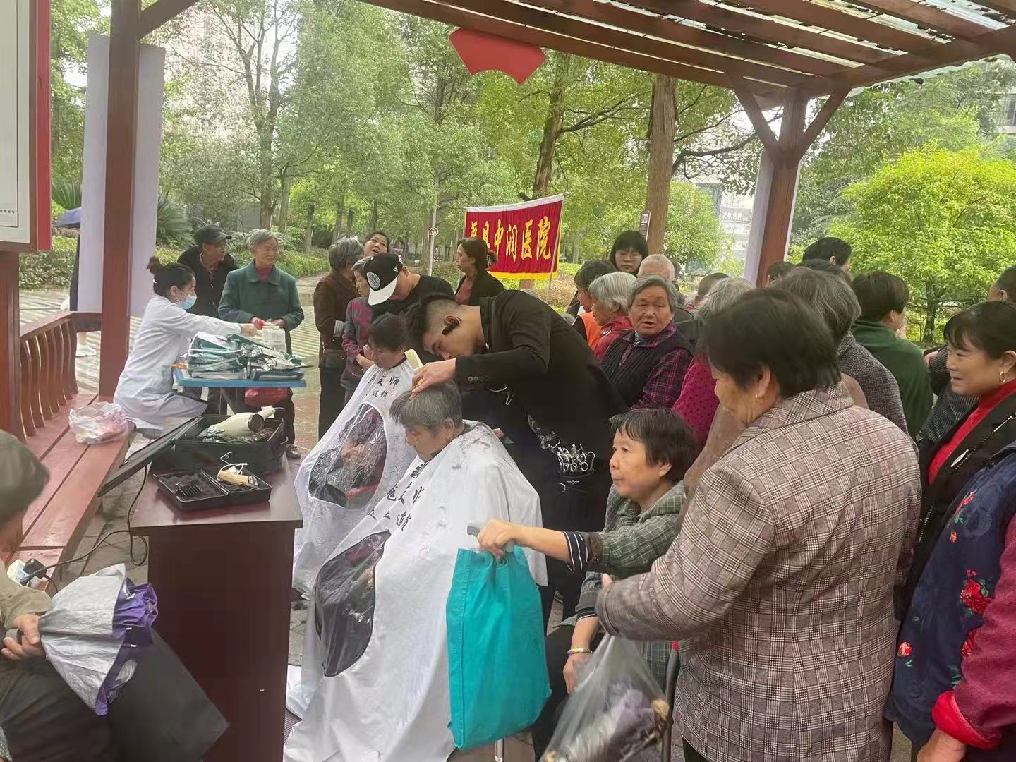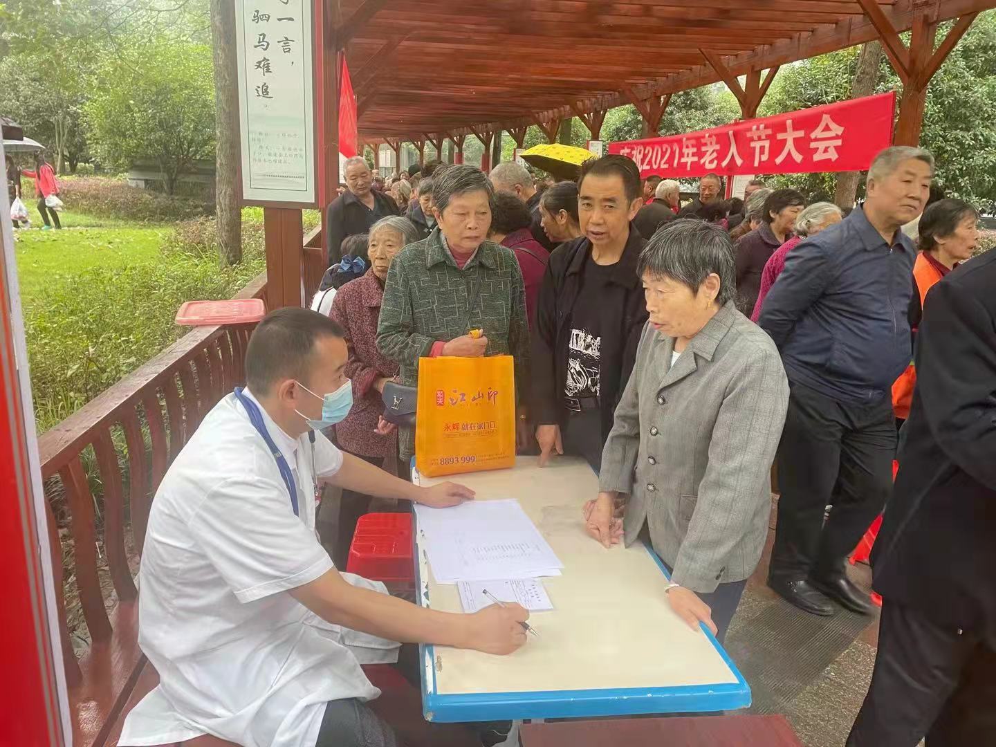 一大早,各类爱心企业、社会组织在望江亭文化长廊支起了桌位,等待老人们的到来。来自渠县中润医院医生护士们,为社区居民提供心脏测听、血压、血糖等检查项目,并为老人们耐心解说,提出科学的养生建议。理发店和修脚采耳店自发在节日当天免费为老人提供亲民服务。同时,渠县爱心协会还准备了爱心糕点等礼品免费为前来参加老年活动大会的老人提供。