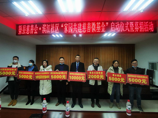 滨江社区党委书记陈英介绍到:“社区成立‘家园共建慈善微基金’,旨在将更多的社会资源更好地注入民生,集思广益,发挥社区和社会资源最大化,对辖区弱势群体开展关爱活动和进行社区公益事业建设。在社会各界协力推动下,滨江社区的慈善事业必将与日俱进、迅速发展,将更加有颜值、有活力、有温度、有秩序、有底蕴,为建设悠然渠县,塑造‘新故乡·在滨江’情怀,打造幸福滨江添砖加瓦。”