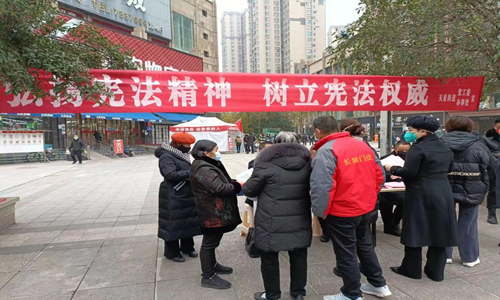 本周是宪法宣传周,为弘扬宪法精神,维护宪法权威,提升人民宪法意识,12月7日上午,天星街道政法委员熊运国带领天星司法所、综治中心及濛山社区工作人员在东昇购物广场开展宪法宣传活动。