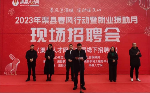 春风送温暖·援助暖民心,在这个春风送暖,万象更新的美好季节,2月1日,由渠县人力资源和社会保障局主办、渠县就业服务管理局与渠县农民工服务中心承办、渠县天星街道党工委与渠县人才网协办的“2023年渠县春风行动暨就业援助月·现场招聘会”活动,在渠县天星街道新时代文明实践广场隆重举行,现场来了150多家企业,提供了2000多个岗位。县人社局党委书记、局长严飞,副局长杨力,天星街道党工委书记黄云明等一行参加了此次招聘会活动。