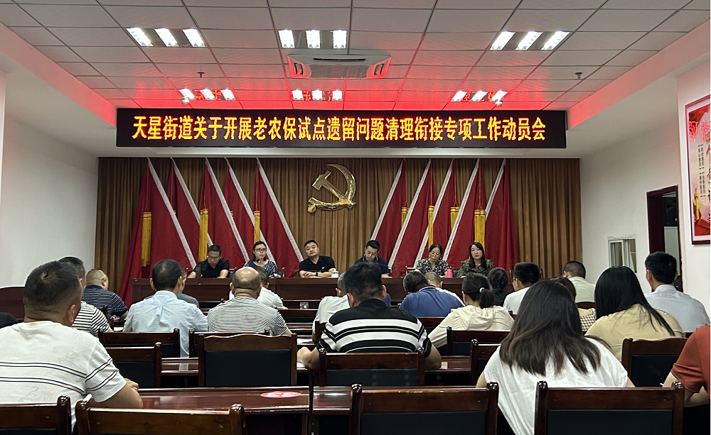 为扎实开展老农保试点遗留问题清理衔接工作,2023年7月18日,天星街道组织各办公室、各村(社区)干部召开了“天星街道关于开展老农保试点遗留问题清理衔接专项工作动员会”。