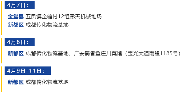 新增病例在蓉轨迹公布如下,请与下列轨迹有重叠的市民立即向社区和单位(或居住的酒店)报备,并尽快接受核酸检测。