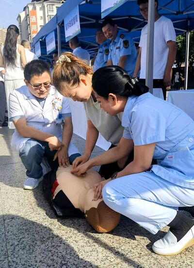 来自县人民医院的专家团队为市民带来实用的急救技能培训,现场讲解心肺复苏术的规范操作流程、海姆立克急救法应对异物梗阻的技巧、创伤止血包扎的正确方式,以及常见急症(如中暑、低血糖)的现场处理要点,并手把手指导群众练习。在安全文化展区,各相关部门通过宣传展板、安全主题绘画和书法作品,生动形象地展示了安全生产、防灾减灾等内容,吸引不少市民驻足观看。
