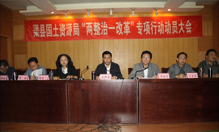 为贯彻落实中纪委、最高人民检察院、监察部、国土资源部联合召开的深入开展国土资源系统腐败问题治理工作电视电话会议精神,按照国土资源部、省国土资源厅、市国土资源局关于开展“两整治、一改革”(土地和矿业权交易市场专项整治,整纪纠风专项整治,深化国土资源管理制度改革)专项行动的统一部署,渠县国土资源局于10月12日召开了全县国土资源系统“两整治、一改革”专项行动动员大会,全面安排部署了全县国土资源系统“两整治、一改革”专项行动工作。党委班子成员,机关各股室、直属事业单位全体干部职工,国土资源所正、副所长参加了会议。会议由党委委员、副局长李永全主持。