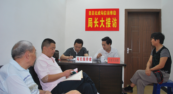 9月17日上午在县民政局开展的局长大接访活动中,局党组书记、局长王勇同志及民政局优抚股、低保股等股室负责人在民政局信访接待室接待来访群众20余人次。