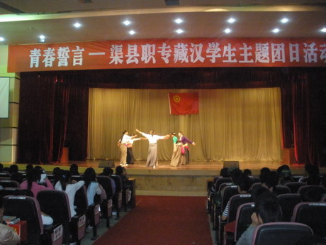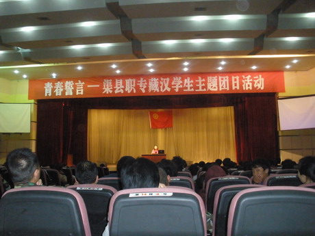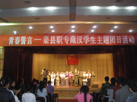 为贯彻落实省、市、县关于实施藏区“9+3”免费教育工作会议精神,让藏区学生尽快融入学校的学习生活,全方位提高他们的综合素质,把他们培养成为祖国的有用之材,10月15日下午,团县委、县职专联合主办的“青春誓言--渠县职专藏汉学生主题团日活动”在职专礼堂隆重举行。