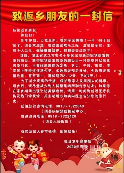渠县卫生健康局:致返乡朋友的一封信