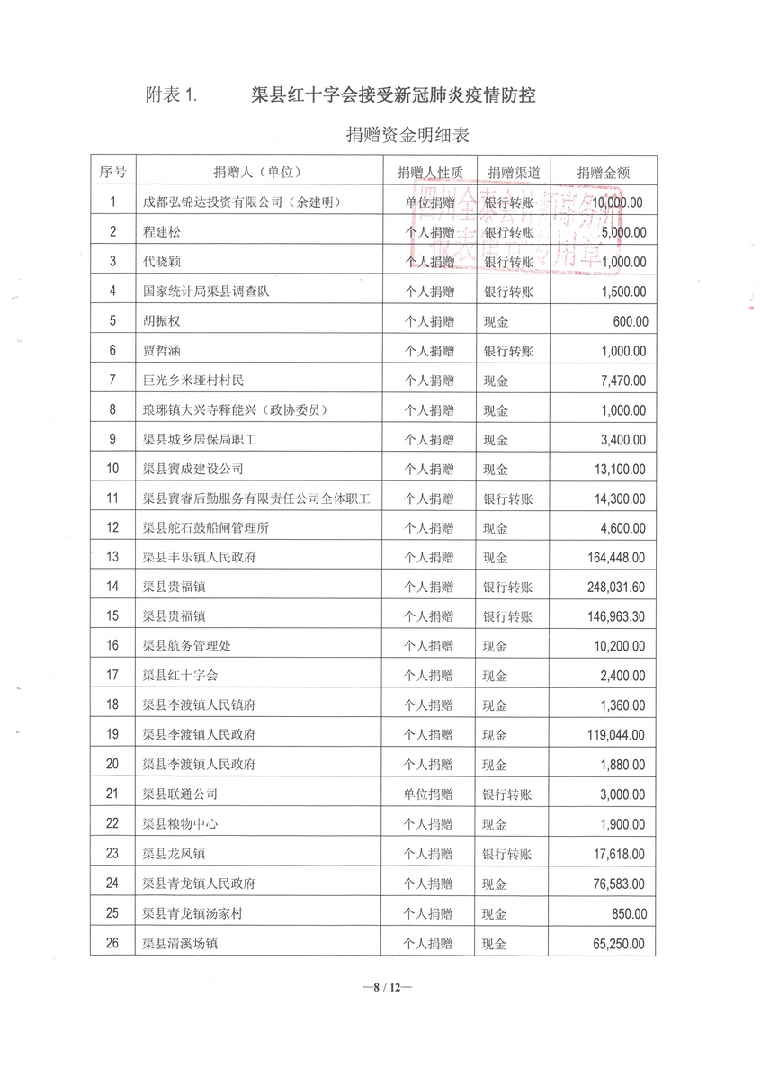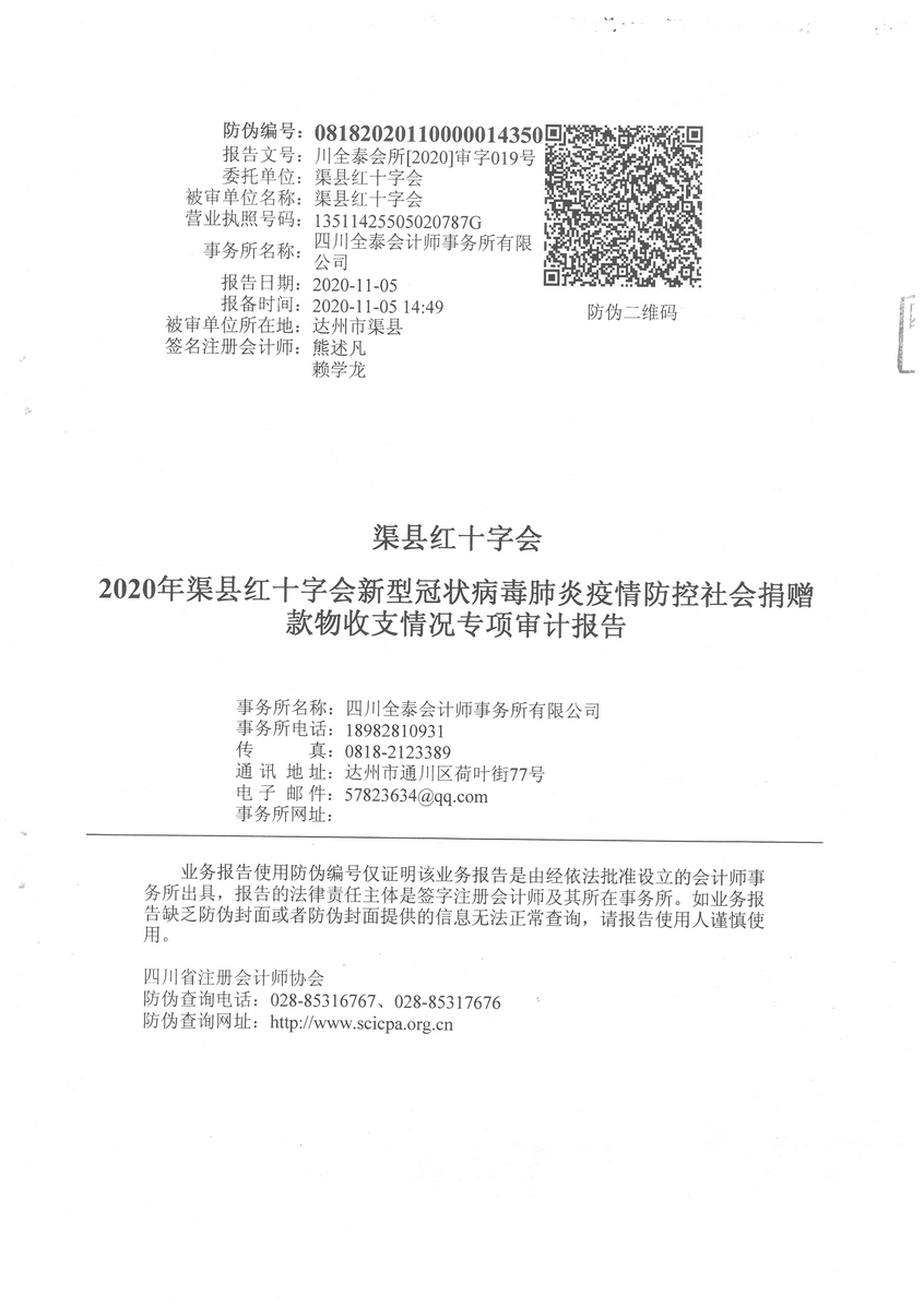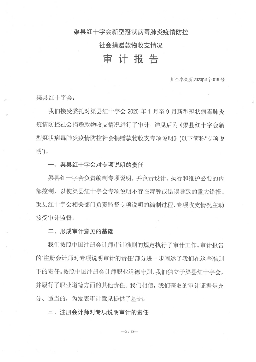 2020年渠县红十字会新型冠状病毒肺炎疫情防控社会捐赠款物收支情况专项审计报告 字体:大 小 打印 关闭本页 作者:县红十字会 来源:本站原创 发布时间:2020-11-20 10:28:25 点击数: 扫一扫下载渠县网APP 分享 分享到: