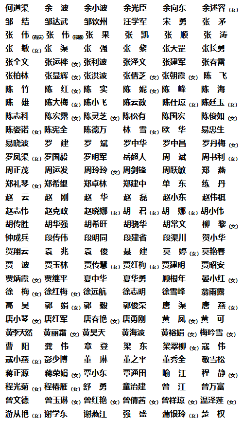 渠县人民代表大会常务委员会公告(第59号) 字体:大 小 打印 关闭本页 作者:渠县人民代表大会常务委员会 来源:本站原创 发布时间:2021-09-10 13:37:36 点击数: 扫一扫下载渠县网APP 分享 分享到: 渠县人民代表大会常务委员会公告(第59号) 根据渠县第十八届人大常委会代表资格审查委员会的审查报告,渠县第十八届人大常委会第47次会议确认2021年8月30日选举出的398名渠县第十九届人民代表大会代表资格全部有效。现将当选代表名单公告如下(按姓名笔画为序): 特此公告 渠县人民代表大会常务委员会 2021年9月10日