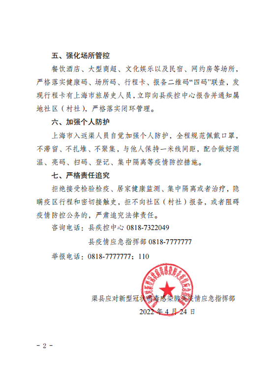 渠县应对新型冠状病毒感染肺炎应急指挥部通告〔2022〕第13号 字体:大 小 打印 关闭本页 作者:渠县应对新型冠状病毒感染肺炎应急指挥部 来源:本站原创 发布时间:2022-04-26 19:28:00 点击数: 扫一扫下载渠县网APP 分享 分享到: