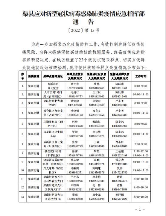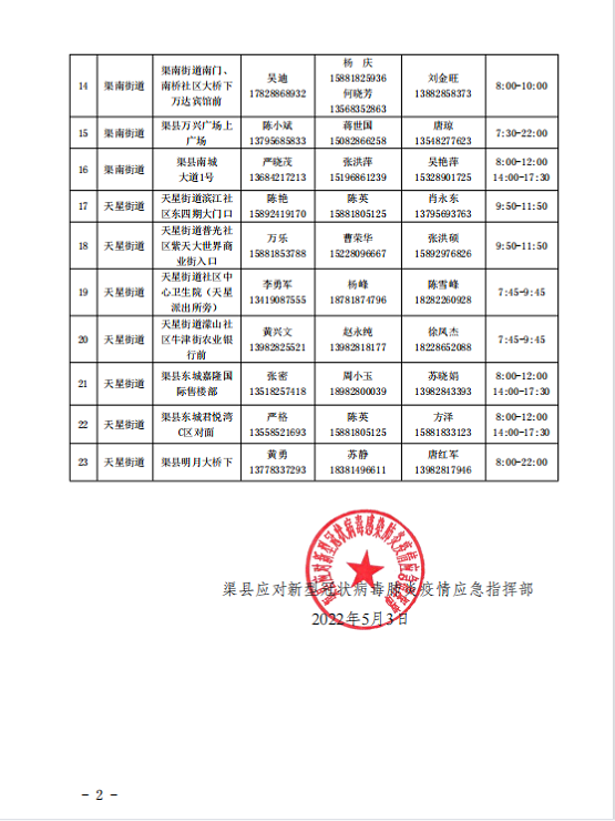 渠县应对新型冠状病毒感染肺炎疫情应急指挥部通告〔2022〕第15号 字体:大 小 打印 关闭本页 作者:渠县应对新型冠状病毒感染肺炎疫情应急指挥部 来源:本站原创 发布时间:2022-05-03 13:51:29 点击数: 扫一扫下载渠县网APP 分享 分享到: