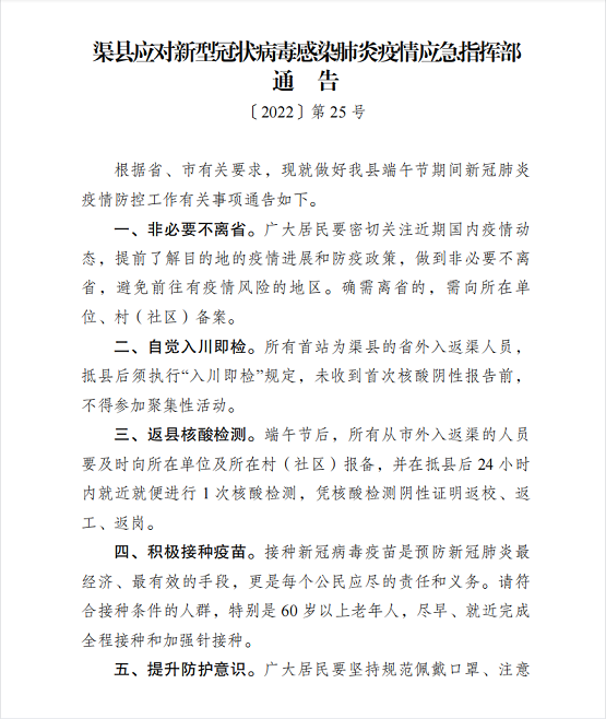 渠县应对新型冠状病毒感染肺炎疫情应急指挥部第25号通告 字体:大 小 打印 关闭本页 作者:渠县应对新型冠状病毒感染肺炎疫情应急指挥部 来源:本站原创 发布时间:2022-06-02 16:37:55 点击数: 扫一扫下载渠县网APP 分享 分享到: